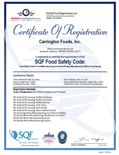 March 5, 2012 Washington, DC – Mobile Alabama-based Carrington Foods has joined the National Fisheries Institute’s Crab Council. The coalition is dedicated to the sustainability of blue swimming crab and funds fisheries improvement efforts in Indonesia, the Philippines, and Vietnam.